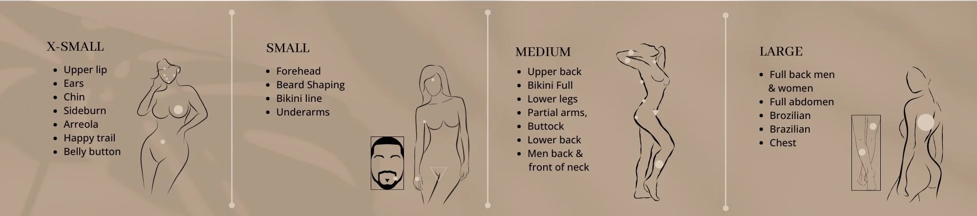 Body areas are classified by extra-small, small, medium, and large. We also offer full face & body treatments. Book an appointment with us today to get started.